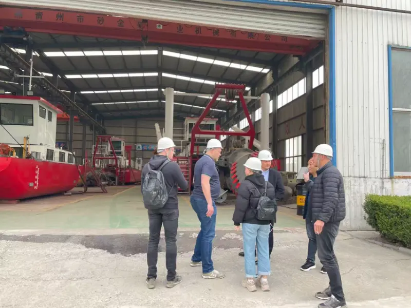 أثناء الفحص، أجرى العملاء تحققًا شاملاً وتأكيدًا لمختلف المعايير الفنية ومؤشرات الأداء التي تشمل: سعة العمل بالرمال، أقصى عمق للتجريف ومسافة التفريغ القصوى للحفارة ذات الشفط القاطع JMD550. وقد رافقهم موظفونا الفنيون طوال العملية وقدموا إجابات مفصلة على الأسئلة الفنية التي طرحها العملاء. بعد ذلك، أجرى الطرفان مفاوضات متعمقة بشأن سعر المعدات، وقد حظيت خطة الأسعار المحددة أخيرًا بتقدير كبير من قبل العملاء مع ردود فعل إيجابية.